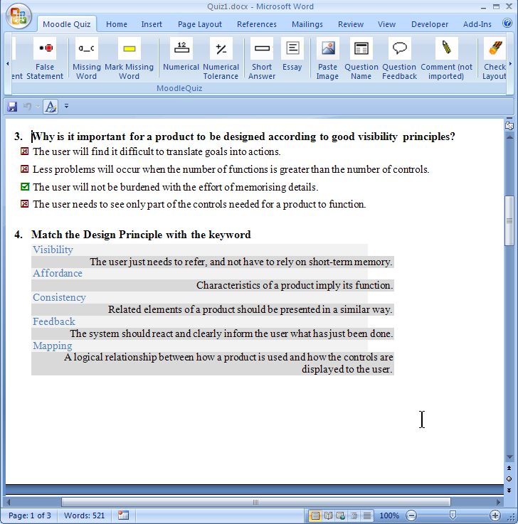 Creating quiz questions with Microsoft Word 2007 and 2010