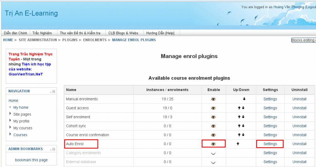 - Sau khi download và giải nén, bạn được folder có tên autoenrol bạn upload vào enrol của moodle.