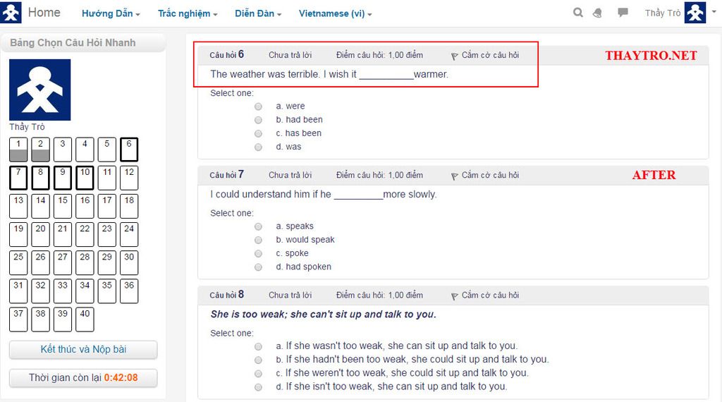2. Giao diện màn hình phần Quiz trên moodle sau khi chỉnh sửa: